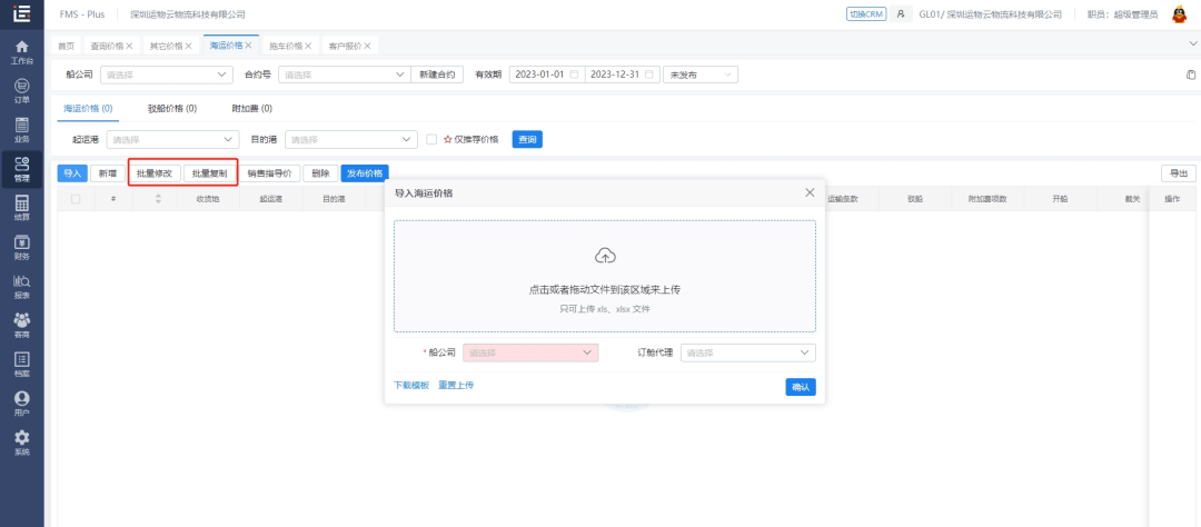 能够轻松对多个报价进行批量操做,降低客户流失率,支撑按照根基港、驳船、附加费组合智能生成运价库。争取最有合作力的价钱,保障企业成本;这使得报价工做变得愈加智能化和高效。轻松建立和办理多个运价库,商务团队将陷入忙碌的答复询价工做,提前取其他人洽商,能第一时间做出适合客户需求的报价方案组合;无需逐一点窜,无需手动分隔处置。支撑海运、FBX等货运委托办事。